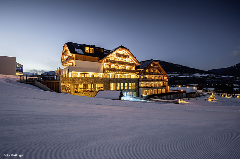 Das ALMGUT im Lungau, ein Rückzugsort im Biosphärenpark Mitten im Winter: Das ALMGUT Mountain Wellness Hotel im Salzburger Lungau liegt dort, wo der Winter zuhause ist. Hoch oben am Katschberg sorgen schneesichere Höhenlagen bis ins Frühjahr für beste Bedingungen auf den Pisten. Direkt vor der Haustür beginnt der Skitag: Skier anschnallen, losfahren und die Weite des Skigebiets genießen. Ski-in & Ski-out ist gelebter Komfort und ein spürbarer Vorteil für alle, die den Winter intensiv erleben möchten. Gleichzeitig entfaltet der Winter rund um das ALMGUT seine ruhige, kraftvolle Seite. Die klare Bergluft, die Weite der Landschaft und das Gefühl, mitten im Schnee angekommen zu sein, lassen den Alltag rasch in den Hintergrund treten.