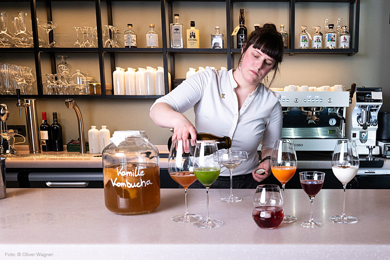 Alkoholfrei und hausgemacht: Die Zeiten, in denen ":ohne Alkohol“ im Restaurant bedeutete, dass Gäste sich mit Wasser oder Saftschorle begnügen mussten, sind glücklicherweise vorbei. Alkoholfreie Getränke sind gefragt und spannend wie nie. Die Oldenburger Kaiserküche setzt beim Genuss im Glas eigene Maßstäbe und kredenzt zu jedem Menü eine innovative Getränkebegleitung, die nicht nur ohne Promille auskommt, sondern auch hausgemacht ist. Maria Neumann weiß, worauf es bei rauschfreien Drinks ankommt.