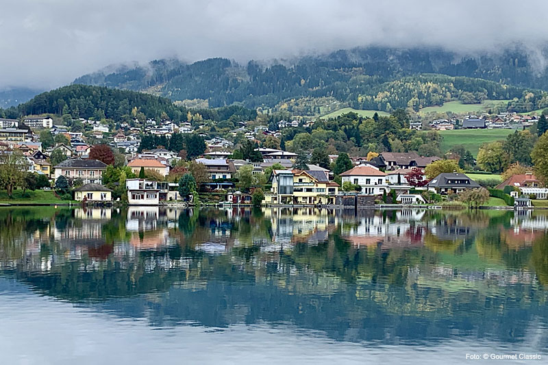 Wellnesshotel KOLLERs am Millstätter See: Herbstlicher Nebel umspannt das Gebirgspanorama am Millstätter See in Österreich und verwehrt zunächst den Ausblick in die Ferne. Eine mit Kastanien gesäumte Allee führt uns von der 6700-Einwohner-Gemeinde Seeboden im österreichischen Bezirk Spittal direkt zum Seegrundstück von KOLLERs Hotel. Der Empfang in der neuen hellen Lobby des Hauses ist überaus herzlich und zuvorkommend und sofort fällt uns auf: hier grüßt nicht der Hirsch von der Wand. Maritime Elemente und Farben wurden mit viel Gespür für Ästhetik in jedem Stockwerk des familiengeführten Hotels integriert. Wer die Leichtigkeit von Weiß- und Aqua-Tönen liebt, wird sich sofort in KOLLERs Domicil wohlfühlen.