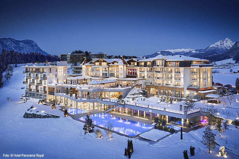Kufsteinerland: Wer unterwegs ist zum Hotel Panorama Royal****s in Bad Häring, kann es schon auf Grund seiner Größe nicht übersehen. Ungefähr 20 Minuten schlängelt sich die Straße von Kufstein auf den Berg nach Bad Häring hinaus. Dann steht das Hotel eindrucksvoll in seiner ganzen Größe oben auf dem Sonnenplateau über dem kleinen Ort. Peter Mayer, der Inhaber des imposanten Hauses begrüßt uns bereits beim Eintreten sehr herzlich und es ist offensichtlich: Dieser Mann ist ein Energiebündel. Wie kann es dann besser passen, dass er sein Hotel auf einem von Geomantikern nachgewiesenen Energie-Kraftplatz errichtet hat? Schon länger in diesen Ort verliebt, gestattete ihm 2003 die Gemeinde Bad Häring, die Liegenschaft für gastronomische Zwecke zu nutzen.