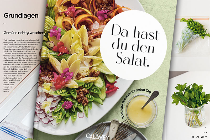 Darauf haben wir gewartet!: Langweilige Blattsalate haben ab sofort keine Chance mehr! Über 75 köstliche und gesunde Rezepte hat die Kochbuchautorin und Foodstylistin Emily Ezekiel in ihrem neuen Buch zusammengestellt, welches jetzt im August im Callwey Verlag erscheint. Zu jeder Jahreszeit kann nun die Frische der jeweiligen Saison auf den Teller gezaubert werden. Wie wäre es mit einem sommerlichen Beerensalat mit Ahorn, Zitrone und Vanille, erfrischendem Melonen-Prosciutto-Salat mit Pangrattato und Zitrus-Dressing für die heißen Tage, oder Rosenkohl Salat mit Petersilie und Dijon-Dressing? Neben ausführlichen Anleitungen zur Zubereitung gibt Emily Ezekiel unter mehreren Rezepten auch genaue Hinweise, wie die Salate in die vegane Variante umgewandelt werden können.